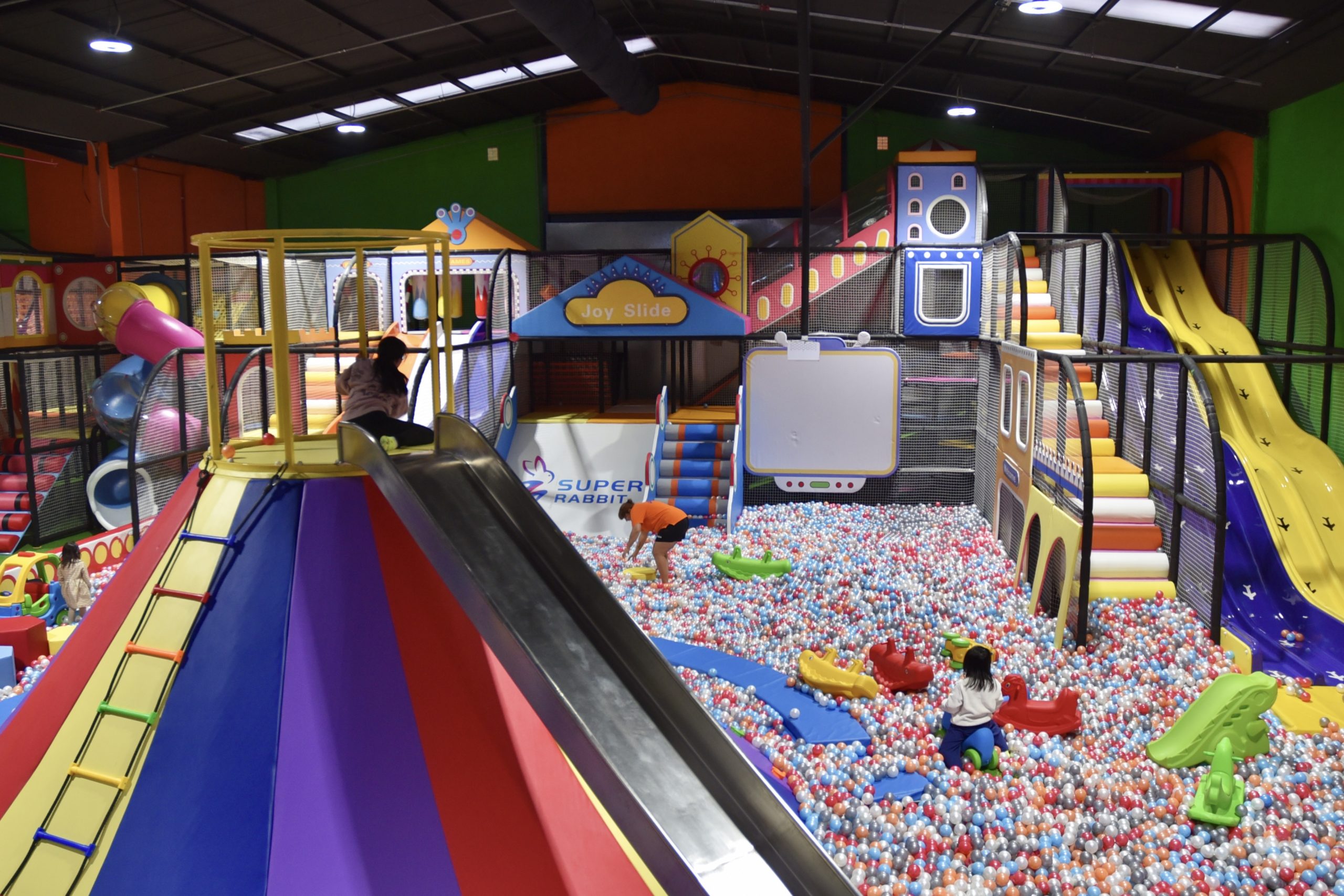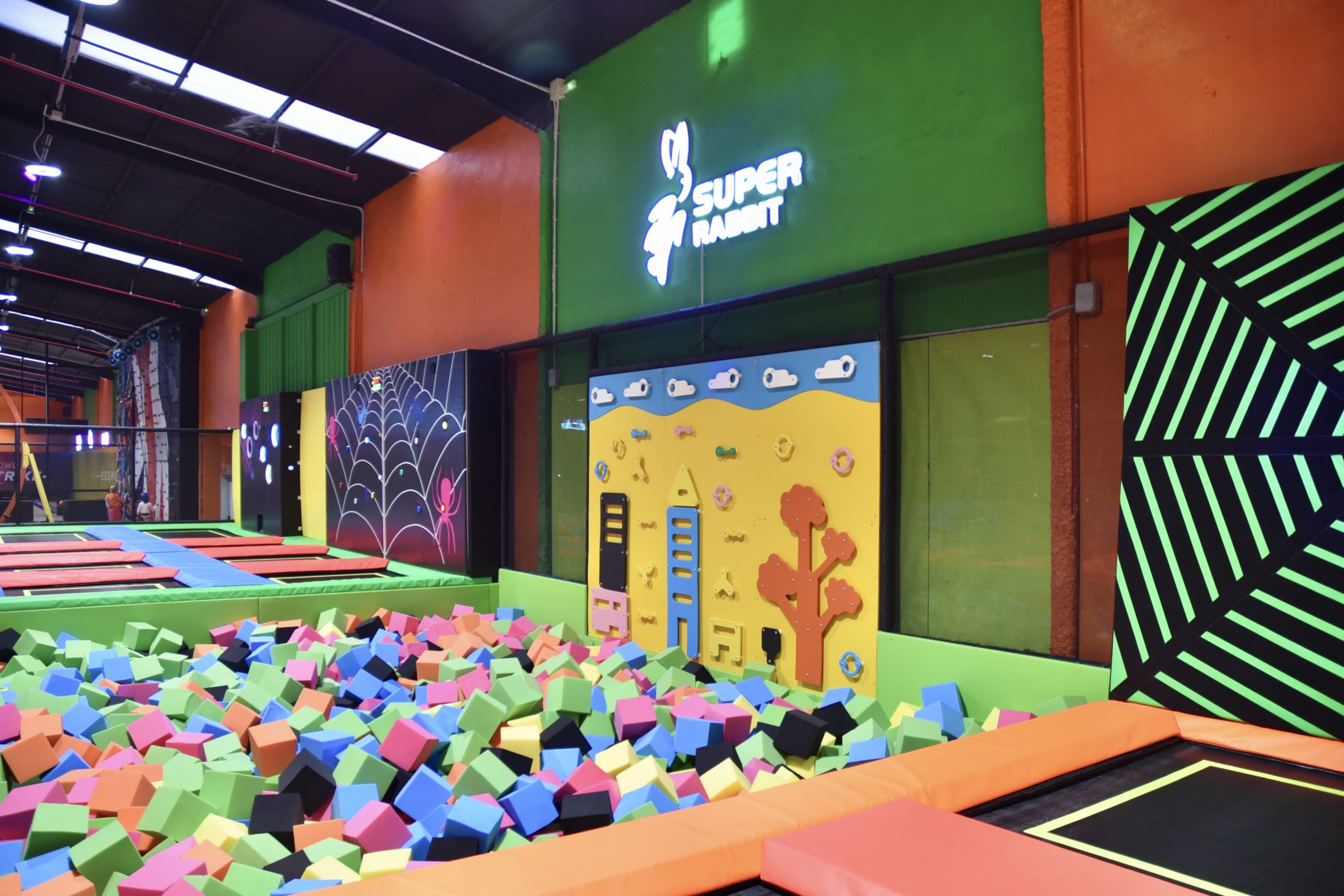 Los espacios Super Rabbit están diseñados para la diversión de todas las edades, ¡niños y adultos en grupo!