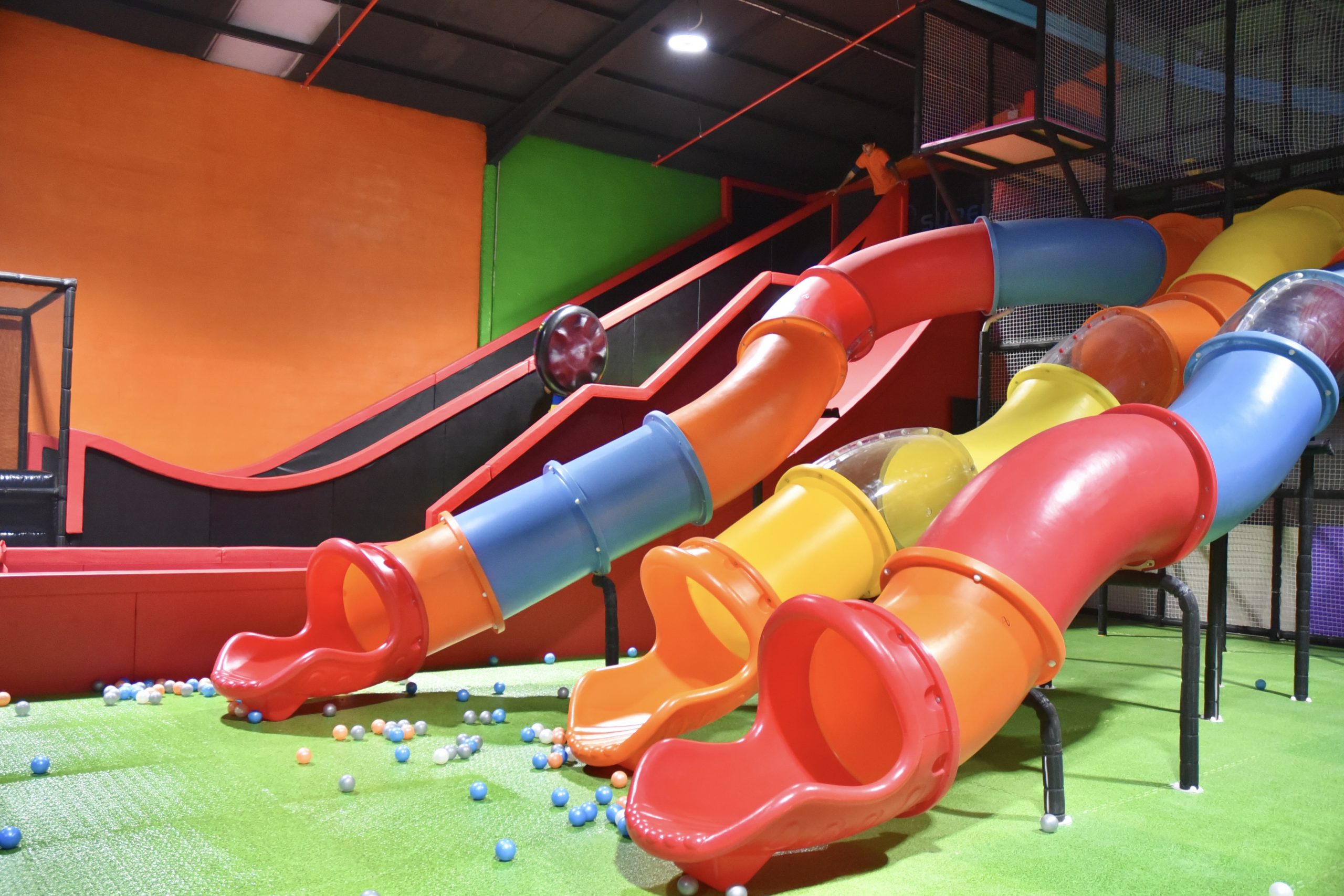 No es solamente un parque de camas elásticas. Tiene muchísimas cosas más! Toboganes con Donuts, zona muy grande para niños más peques con una piscina de bolas inmensa, escalada, bolos…muy limpio, muy amables y con muchos monitores